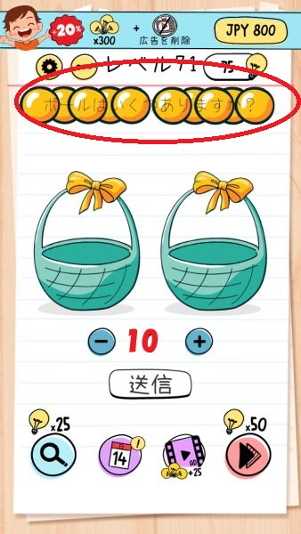 - 出てきたボールを数えて「10」を入力して「送信」をタップする