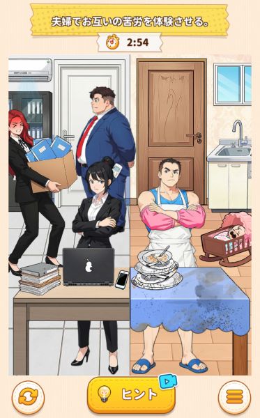夫婦の仕事を入れ替え、お互いに大変であることを体験させましょう。