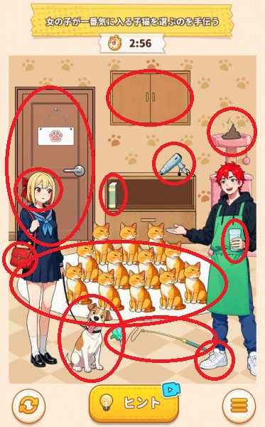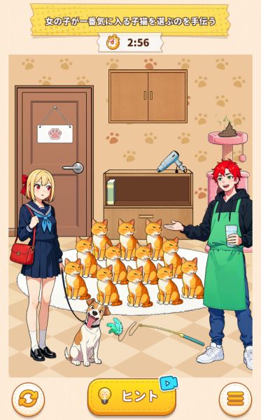 女子高生が気に入る猫ちゃんを見つけ出しましょう。