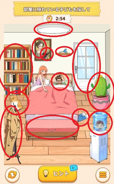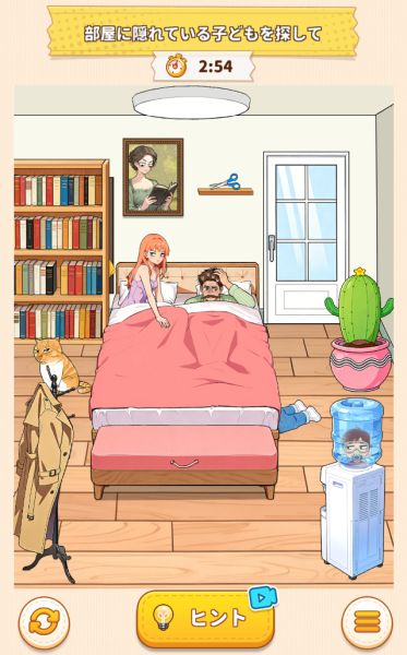 夫婦の部屋の中に隠れている子供たちを全員見つけて追い払いましょう。