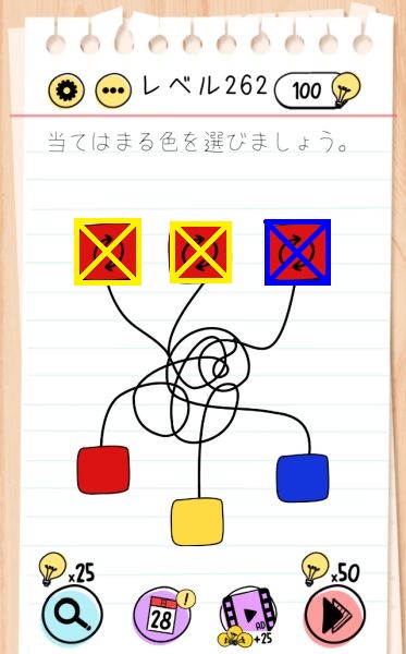 - 上の矢印をタップし、左から黄色・黄色・青に色を変える