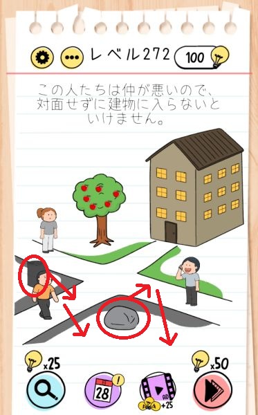 この人たちは仲が悪いので、対面せずに建物に入らないといけません。