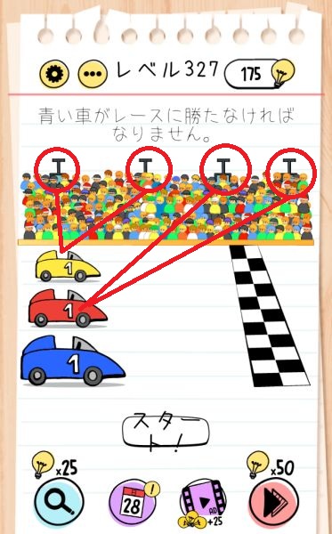 レベル327(青い車をレースで勝たせる)