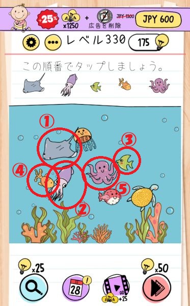 レベル330(海の生き物を順番にタップする)