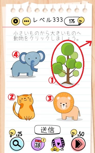レベル333(小さい順に動物を選ぶ)