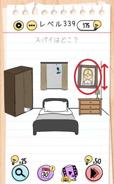 - 右上の絵を上下に何度か動かして落とす