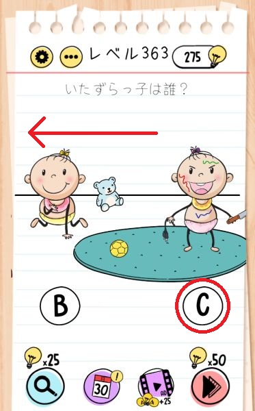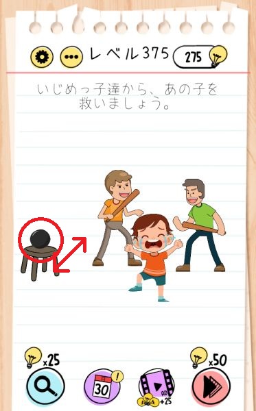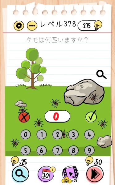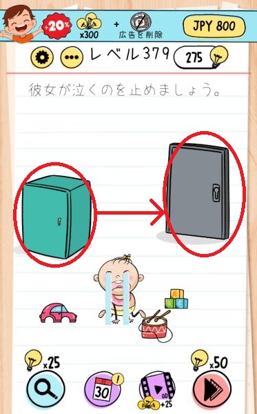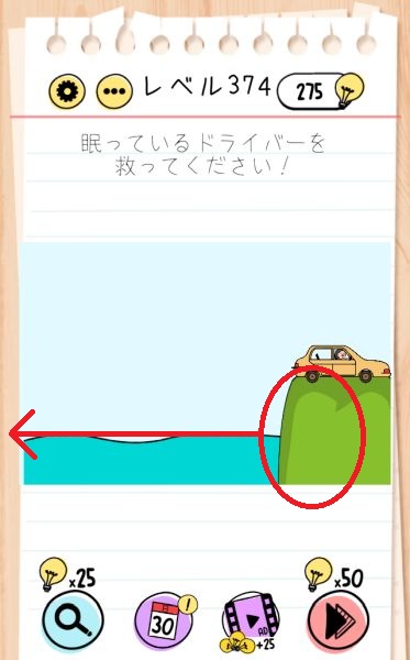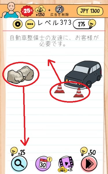 - 左上の岩を左下(ヒントの電球の上あたり)に動かす