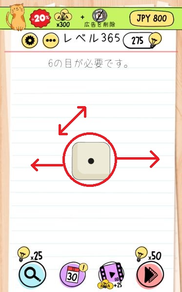 - 2の目のサイコロを左右にスワイプしてサイコロを増やし3つにする