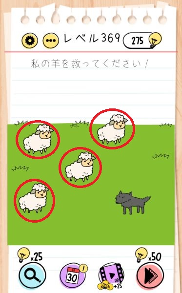 - 羊を動かして数秒間オオカミにぶつからないようにする