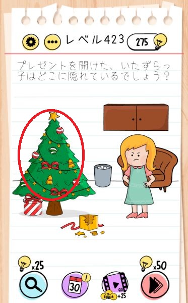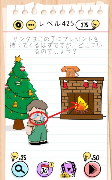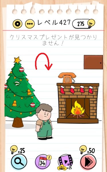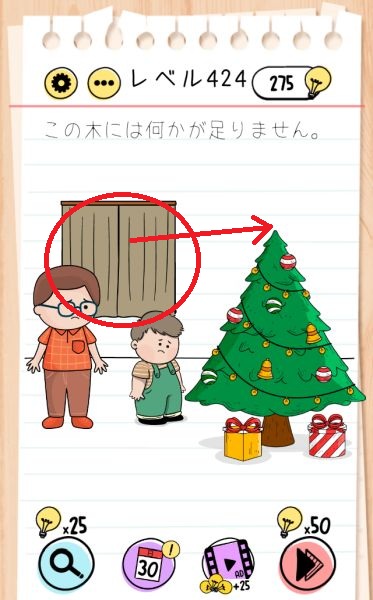 - クリスマスツリーを3回タップして中に隠れている男の子を出す