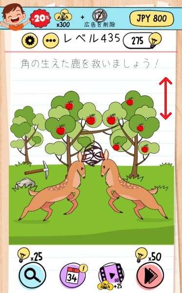 - スマートフォン本体を何度か振って鹿の角を全て落とす