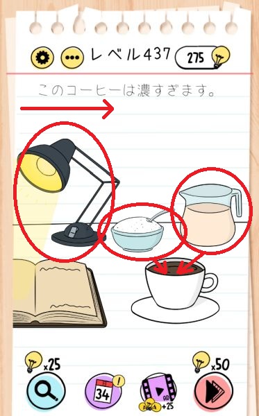 - 左上のランプを右にスワイプしてコーヒーを照らす