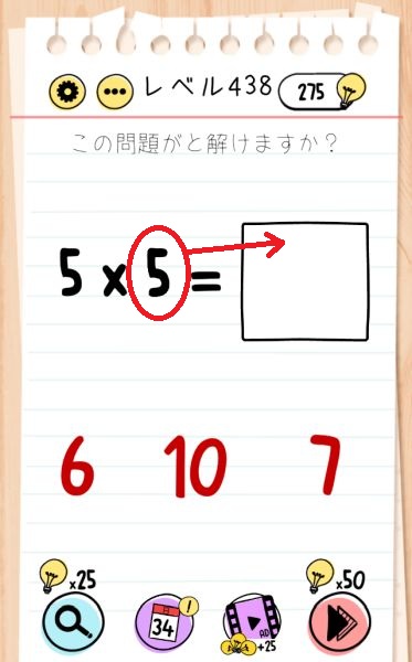 - 数式の右の「5」を右上の四角い枠に5つ動かす