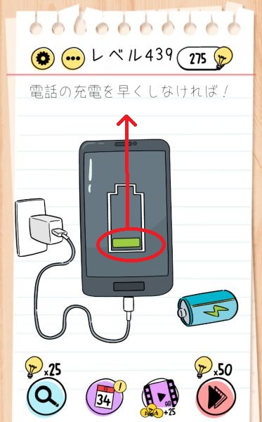 - バッテリーアイコンを何度か上にスワイプして満タンにする