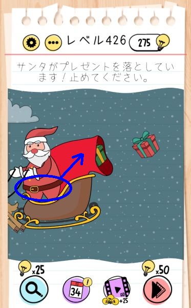 - スマートフォン本体を逆さまにしてプレゼントを出す