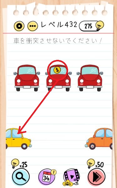 - 上の車にある「$」を左から来る黄色い車の窓につける