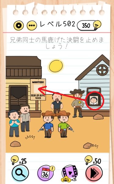 - 右の家の窓にあるポスターを後ろの指名手配の看板に貼る