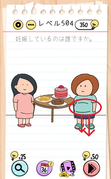 - 右の女性のおなかを下に2回スワイプしてクッションを出す