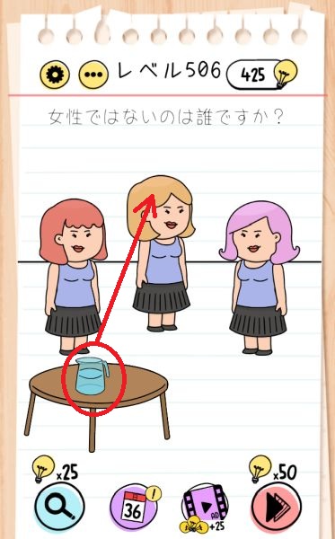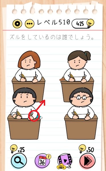 - 左下の学生の左袖(消しゴムのあるほう)を上にスワイプしてめくる