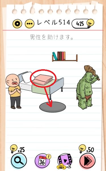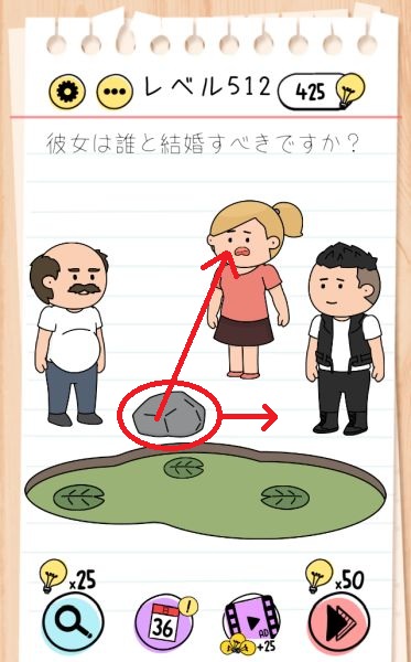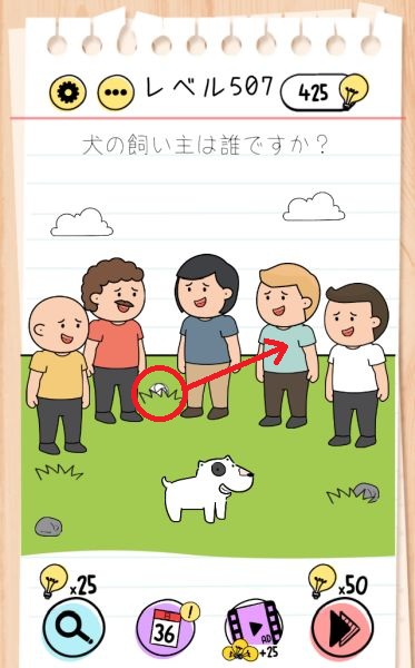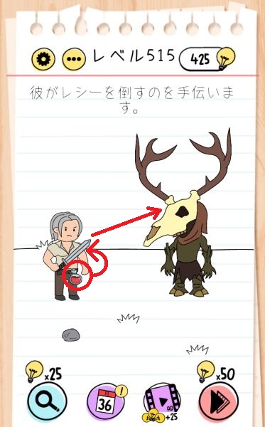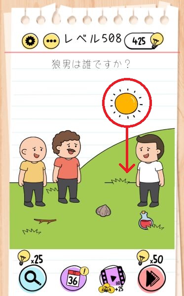 - 男性のポケットに入っている赤い紙を上にスワイプして出す