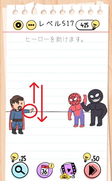 - 左の男性(ドクターストレンジ)の腕を上にスワイプする