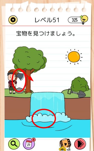 - 画面を左に動かし、右にいる寝ている人に水のボトルをかける