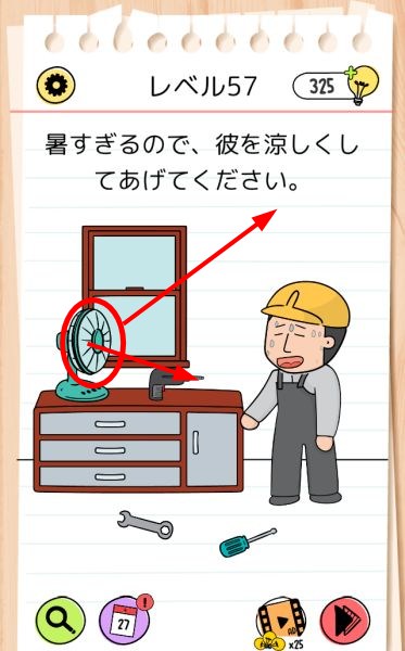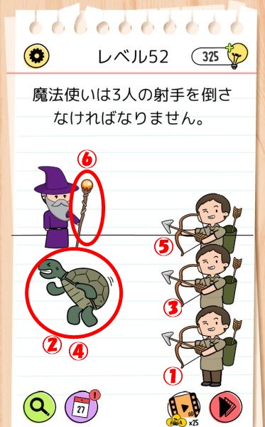 - もう一度人になった亀をタップして戻し、一番上の人に矢を発射させる