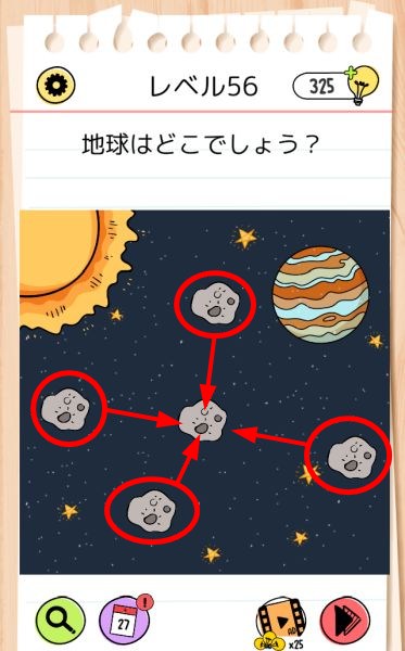 - 周りの隕石を4つ全て中央の隕石に全てくっつける