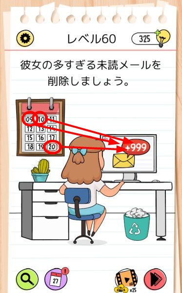 - 左上のカレンダーにある3つの0(09/10/20)を画面のメールの件数(+999)に使って0にする