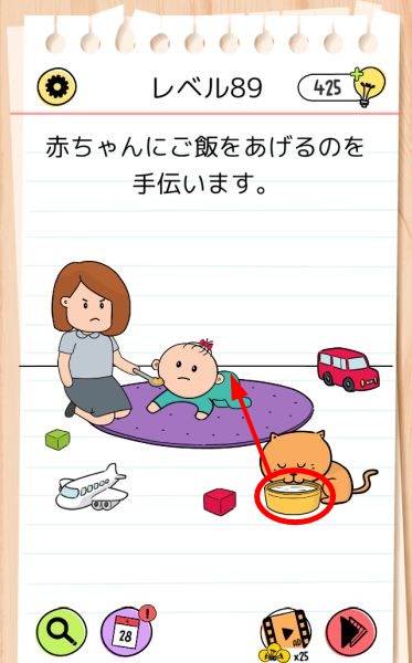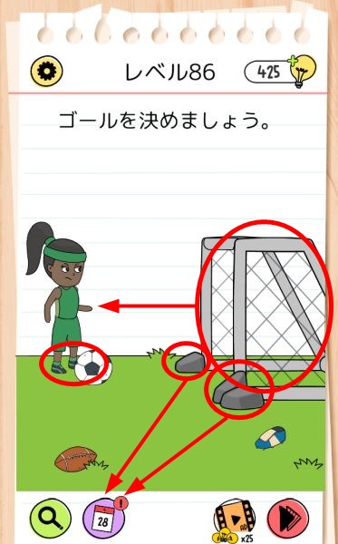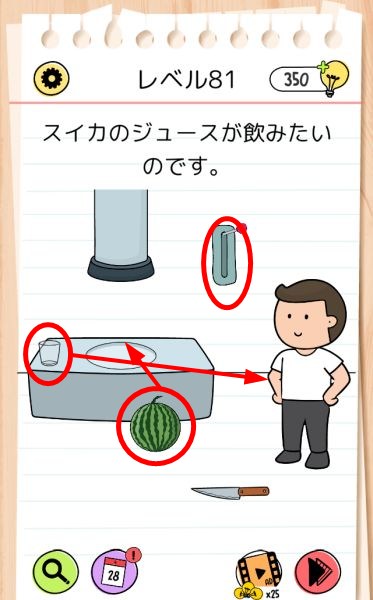 - 青いボールを全て食べさせたら左手(画面的には右)をタップしてボールを落とさせる