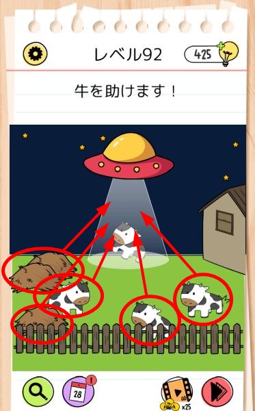 - 素早く牛・藁の山を全てUFOの下に動かして吸わせる