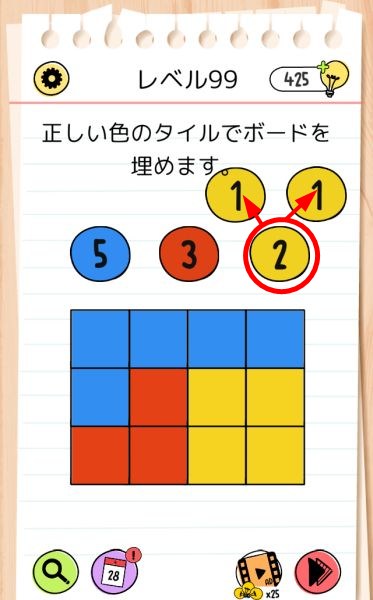 - 下の枠をタップして色と数字のマスの数を合わせる