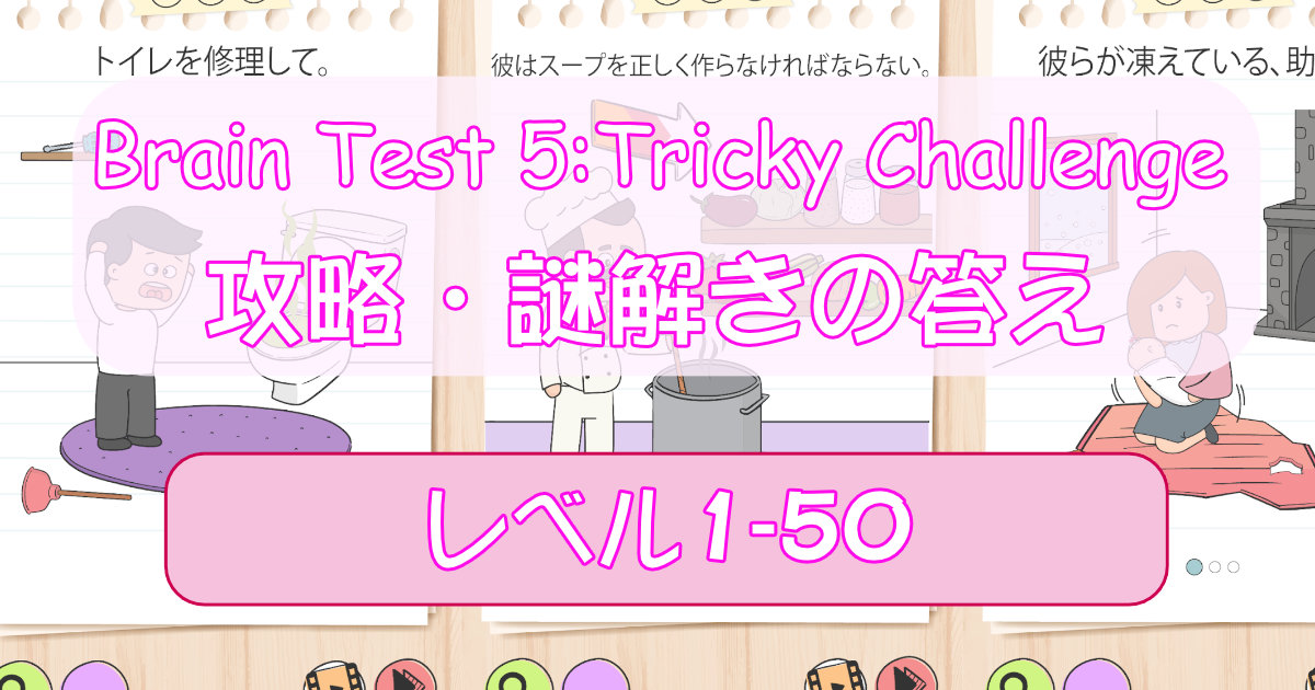 【Brain Test 5/ブレインテスト5】攻略:レベル1~50の謎解きの答えまとめ